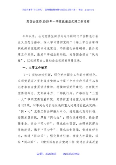 / 某国企党委2025年一季度抓基层党建工作总结