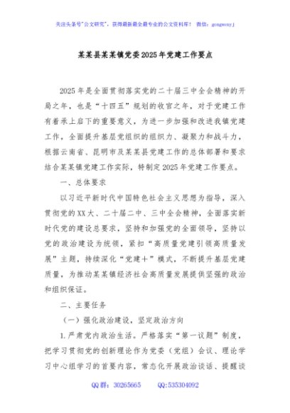 / 某某县某某镇党委2025年党建工作要点