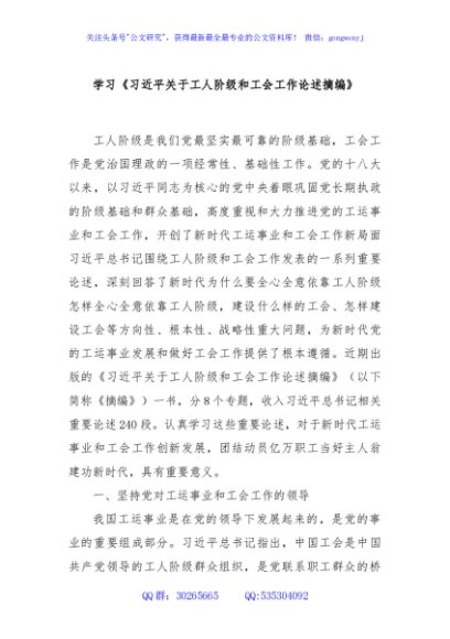 / 学习《总书记关于工人阶级和工会工作论述摘编》