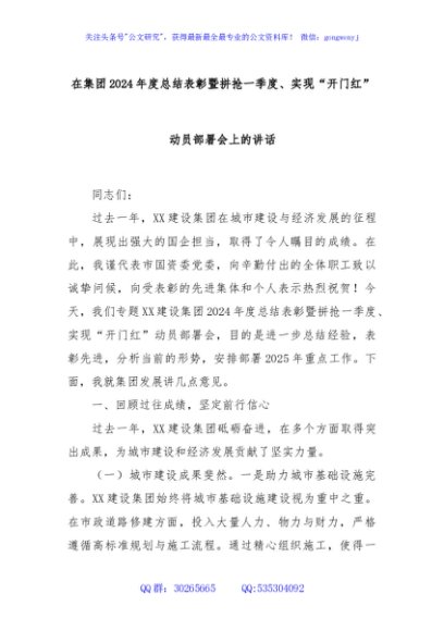 / 在集团2024年度总结表彰暨拼抢一季度、实现“开门红”动员部署会上的讲话
