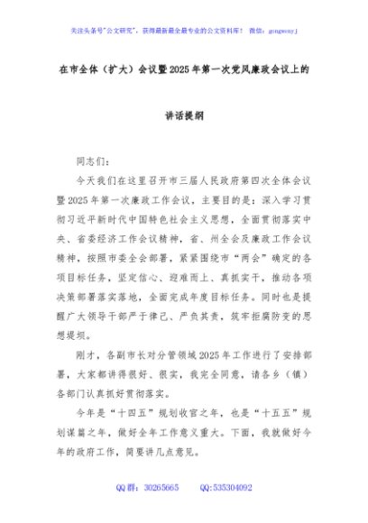 / 在市全体(扩大)会议暨2025年第一次党风廉政会议上的讲话提纲