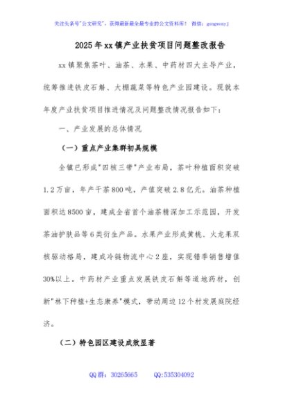 / 2025年xx镇产业扶贫项目问题整改报告