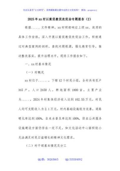 / 2025年xx村以案促教促改促治专题报告 (2)