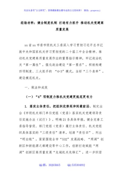 / 经验材料:健全制度机制 打造有力抓手 推动机关党建高质量发展