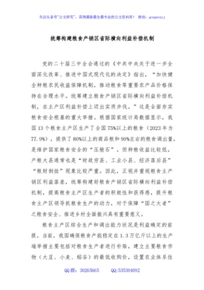 / 统筹构建粮食产销区省际横向利益补偿机制