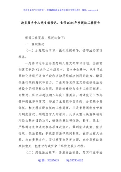 / 政务服务中心党支部书记、主任2024年度述法工作报告