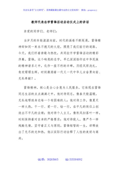 / 教师代表在学雷锋活动启动仪式上的讲话