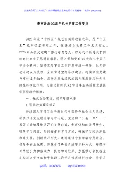 / 市审计局2025年机关党建工作要点