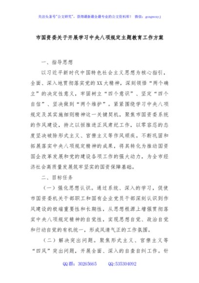 / 市国资委关于开展学习中央八项规定主题教育工作方案