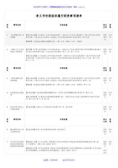 孝义市村级组织履行职责事项清单