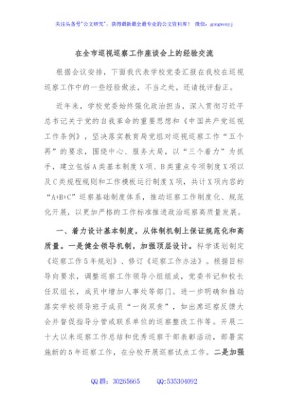 / 在全市巡视巡察工作座谈会上的经验交流