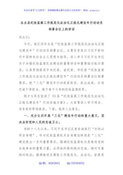 / 在全县纪检监察工作规范化法治化正规化建设年行动动员部署会议上的讲话