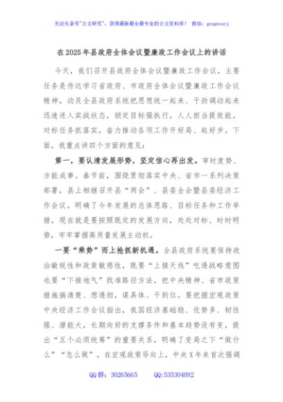 / 在2025年县政府全体会议暨廉政工作会议上的讲话
