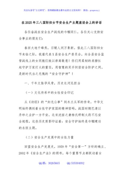 / 在2025年三八国际妇女节安全生产主题座谈会上的讲话