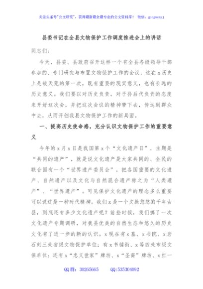/ 县委书记在全县文物保护工作调度推进会上的讲话