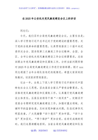 / 在2025年公安机关党风廉政建设会议上的讲话