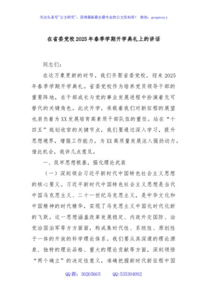 / 在省委党校2025年春季学期开学典礼上的讲话