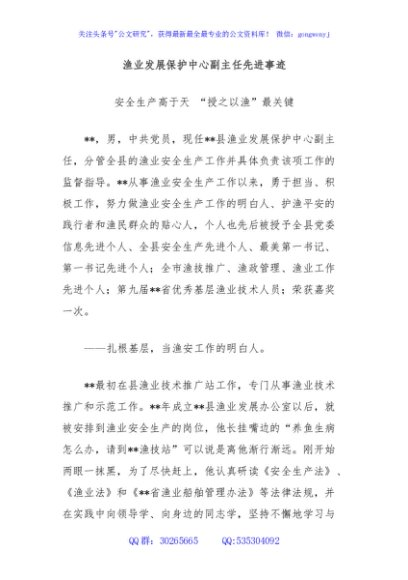 / 渔业发展保护中心副主任先进事迹