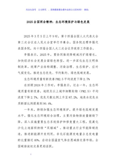 / 2025全国两会精神:生态环境保护与绿色发展