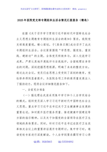 / 2025年医院党支部专题组织生活会情况汇报报告(精选)