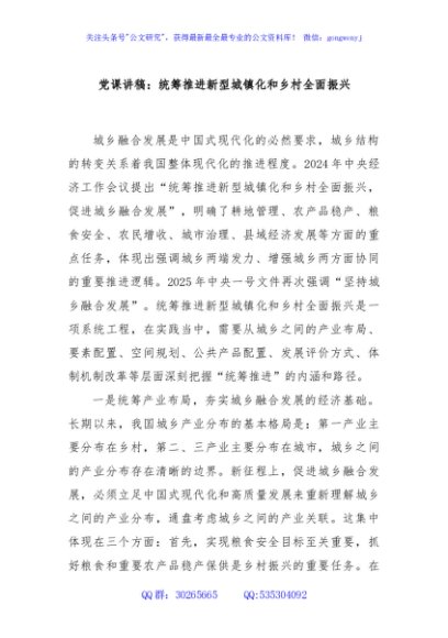 / 党课讲稿:统筹推进新型城镇化和乡村全面振兴
