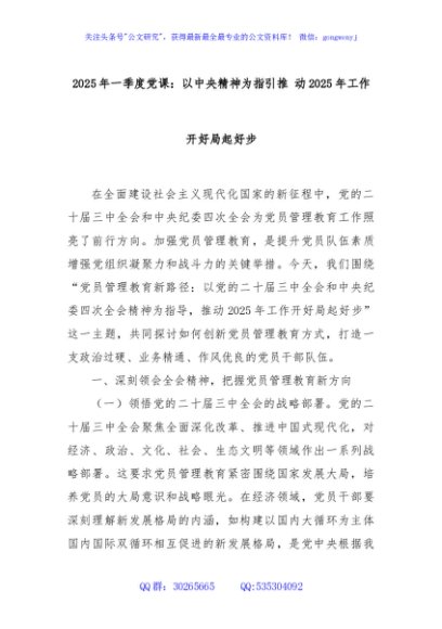 / 2025年一季度党课:以中央精神为指引推 动2025年工作开好局起好步