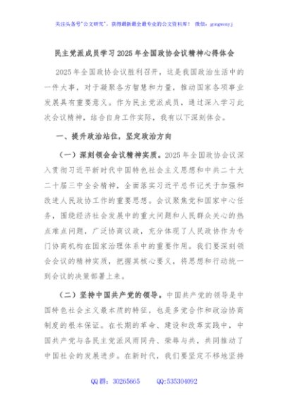 / 民主党派成员学习2025年全国政协会议精神心得体会