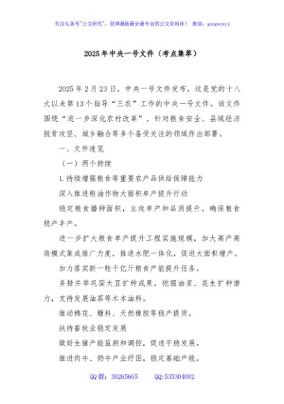 / 2025年中央一号文件(考点集萃)
