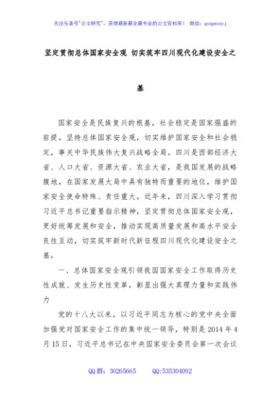 / 坚定贯彻总体国家安全观 切实筑牢四川现代化建设安全之基