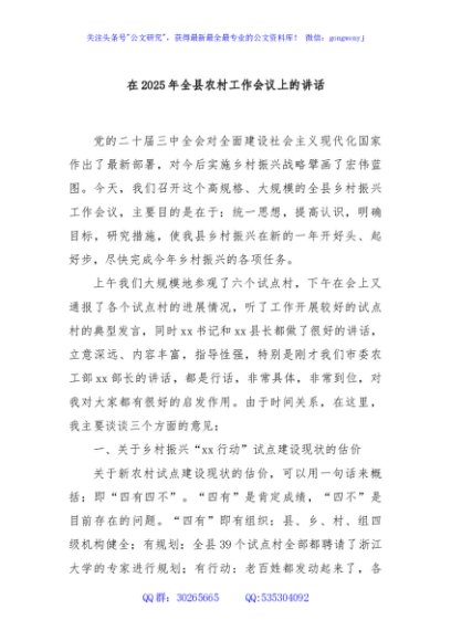 / 在2025年全县农村工作会议上的讲话