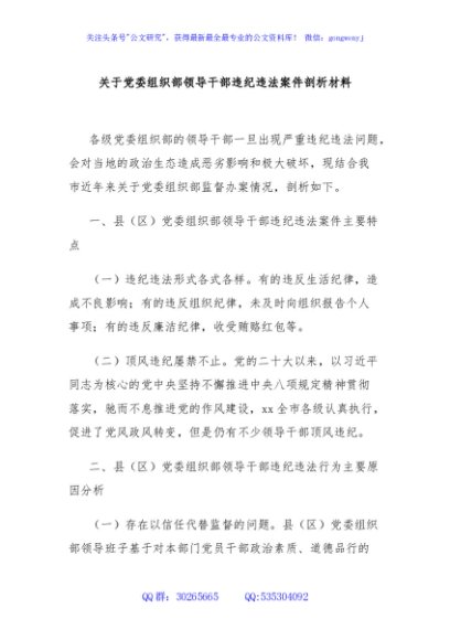 / 关于党委组织部领导干部违纪违法案件剖析材料
