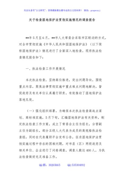 / 关于检查湿地保护法贯彻实施情况的调查报告