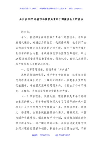 / 局长在2025年省市场监管局青年干部座谈会上的讲话