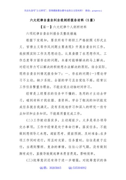 (5篇)六大纪律自查自纠自我剖析报告材料