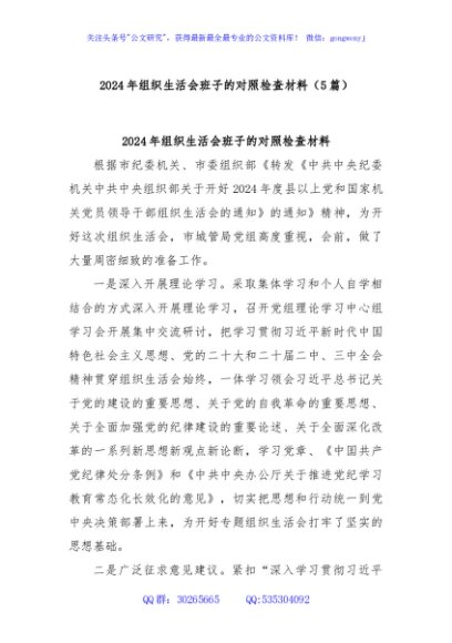 / (5篇)2024年组织生活会班子的对照检查材料