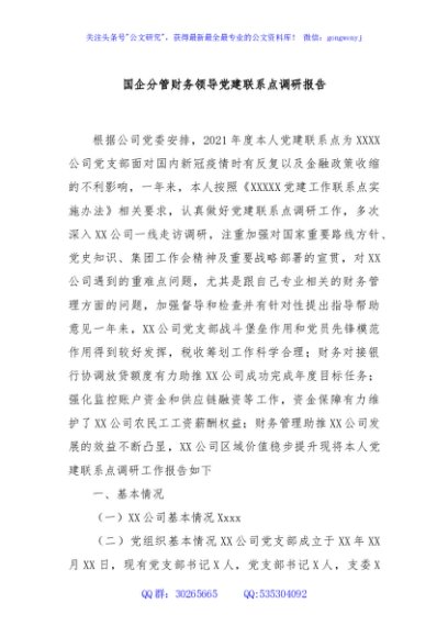 / 国企分管财务领导党建联系点调研报告