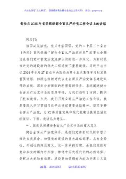 / 部长在2025年省委组织部全面从严治党工作会议上的讲话