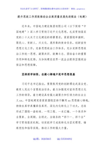 / 提升思政工作质效推动企业高质量发展先进做法(电建)
