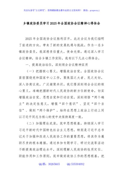 / 乡镇政协委员学习2025年全国政协会议精神心得体会
