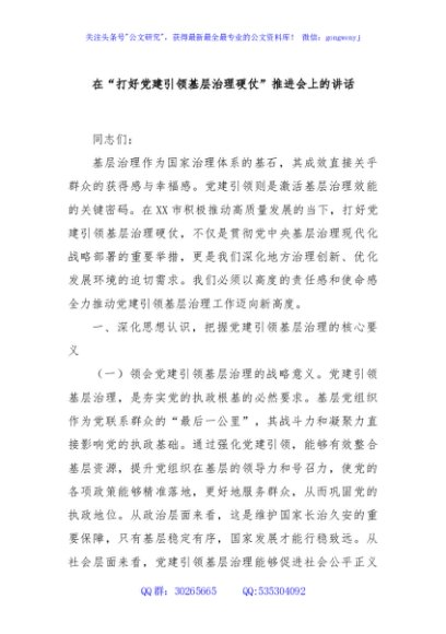 / 在“打好党建引领基层治理硬仗”推进会上的讲话