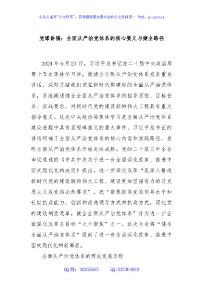 / 党课讲稿:全面从严治党体系的核心要义与健全路径