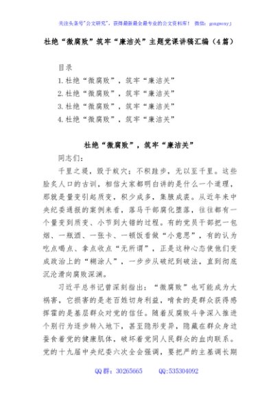 / (4篇)杜绝“微腐败”筑牢“廉洁关”主题党课讲稿汇编