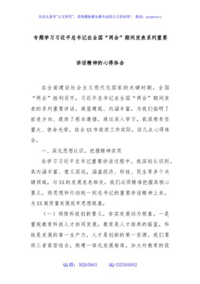 / 专题学习总书记在全国“两会”期间发表系列重要讲话精神的心得体会