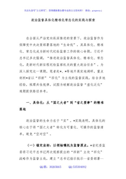 政治监督具体化精准化常态化的实践与探索