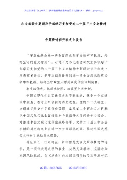 / 在省部级主要领导干部学习贯彻党的二十届三中全会精神专题研讨班开班式上发言