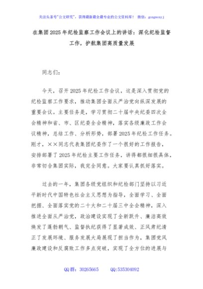 / 在集团2025年纪检监察工作会议上的讲话:深化纪检监督工作,护航集团高质量发展