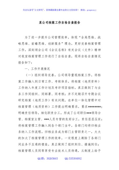 / 某公司档案工作自检自查报告