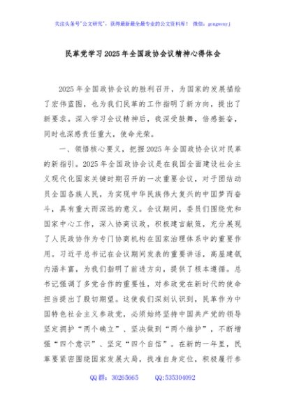 / 民革党学习2025年全国政协会议精神心得体会