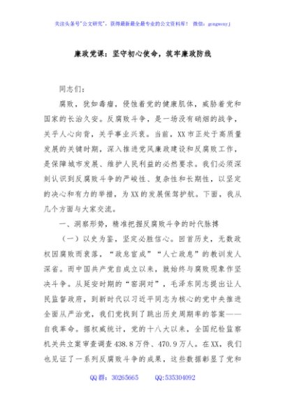 廉政党课讲稿:坚守初心使命,坚定不移推进反腐败斗争