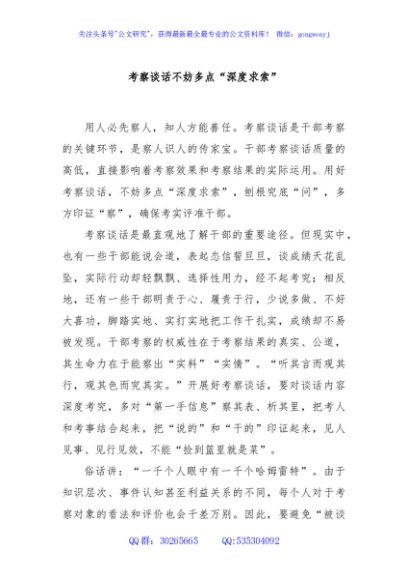 / 考察谈话不妨多点“深度求索”